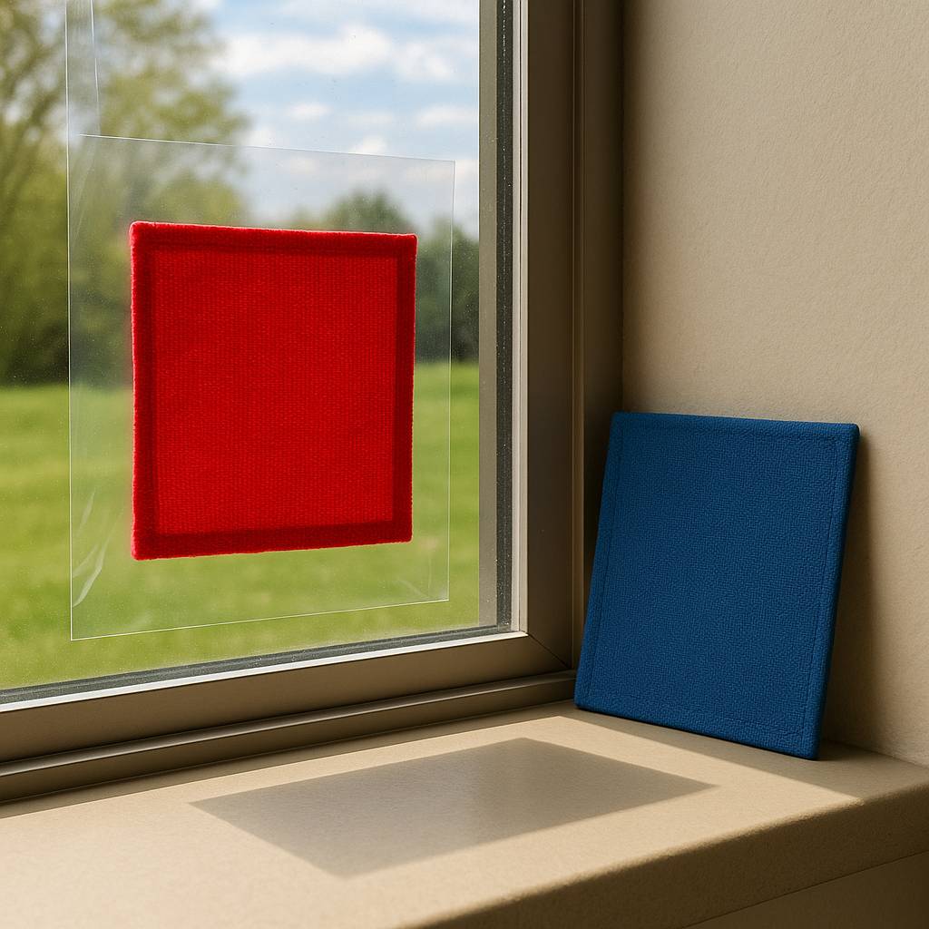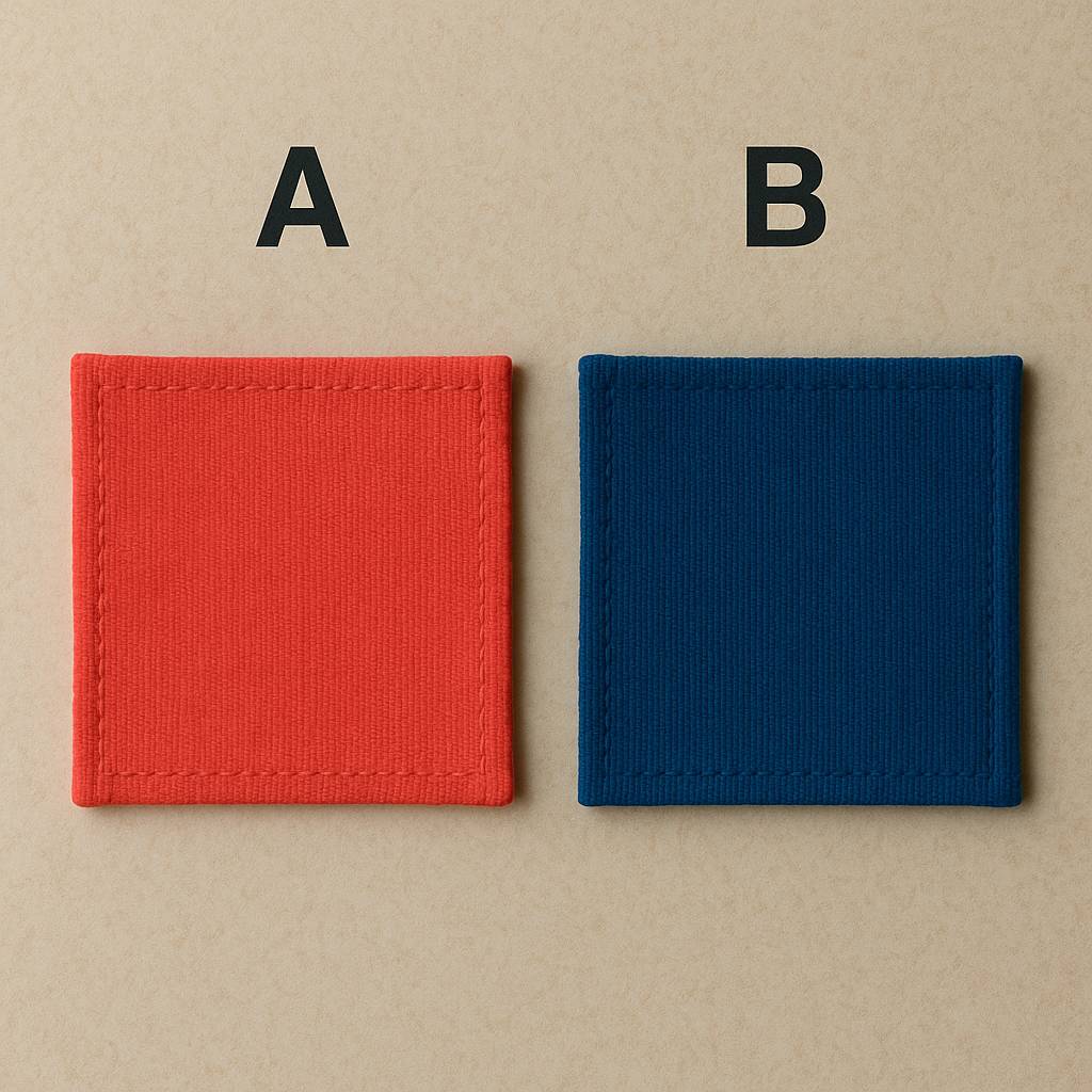 - 색 있는 천 조각 두 장 (빨간색, 파란색)